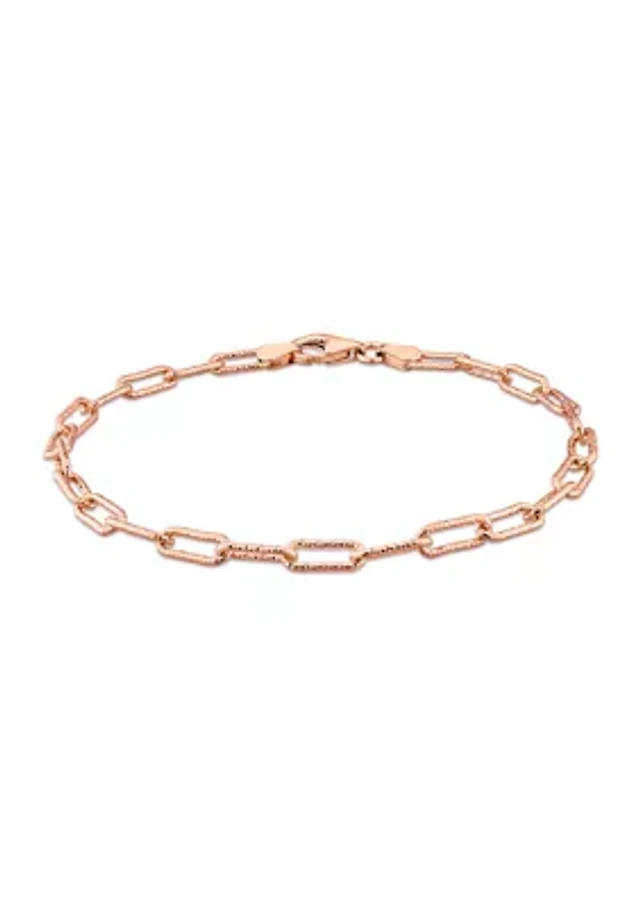 18k Rose Gold Plated Sterling Silver 3.5mm Fancy Paper Clip Chain Bracelet, 7.5"