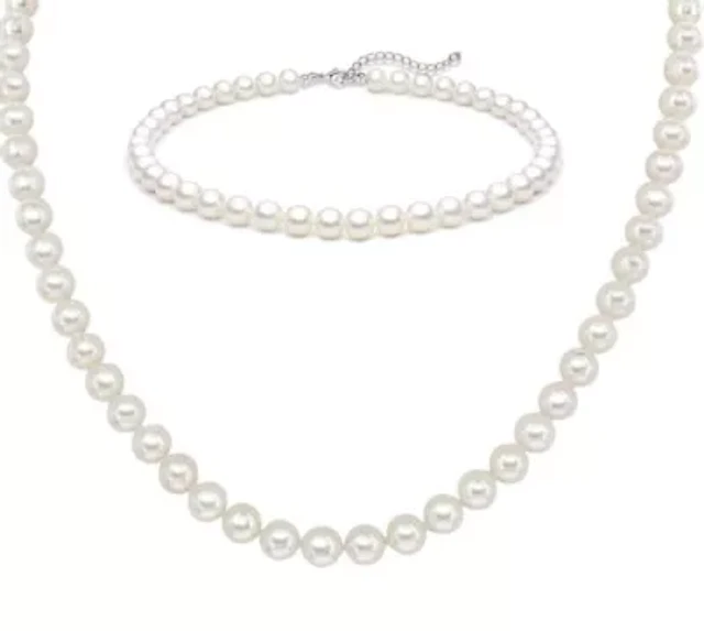 Silver Plated Alternating Mini Cubic Zirconia & Pearl Bracelets 2-Pack