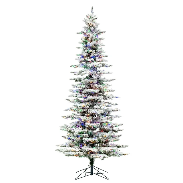 7.5ft. Pre-Lit Flocked Sierra Fir Slim Artificial Christmas Tree, Multi-Colored LED Lights
