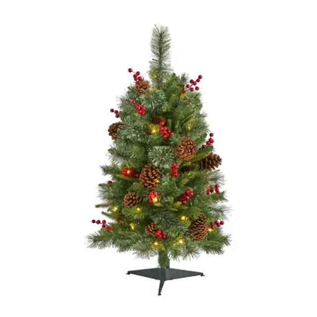 2ft. Pre-Lit Natural Bark Alpine Artificial Christmas Tree, Warm White Dura-Lit® LED Lights