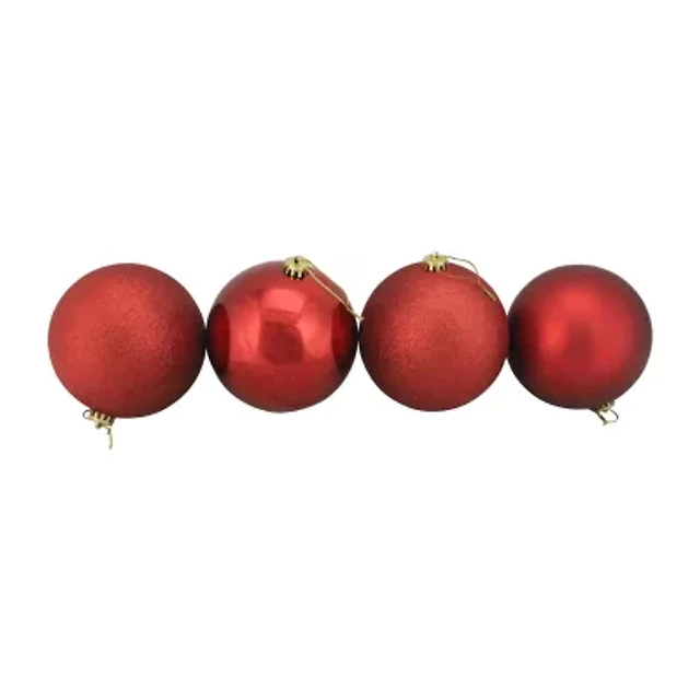 4ct Matte Red Hot Retro Reflector Shatterproof Christmas Finial Ornaments 7.5"