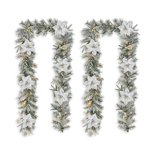 Glitzhome® 6ft. Pre-Lit Frosted Greenery Pinecones Christmas Garlands with Timers, 2ct.