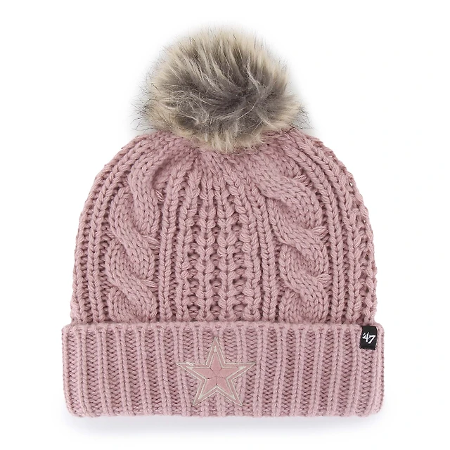 Girls Youth Outerstuff White Dallas Cowboys Cable Cuffed Knit Hat with Pom