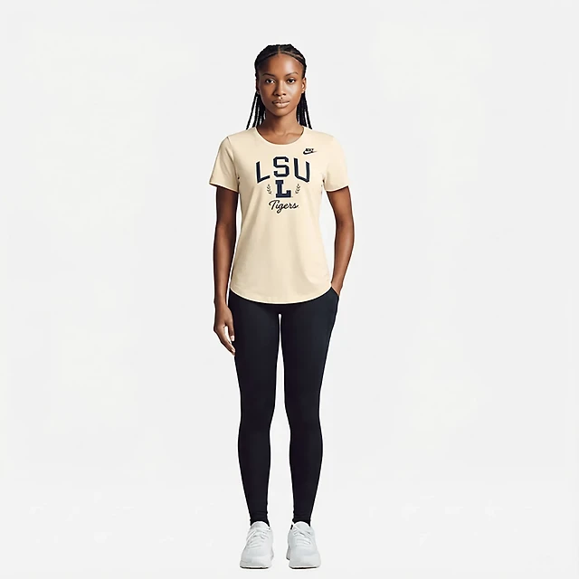 Women's White LSU Tigers Hand Sewn Beaded Script T-Shirt