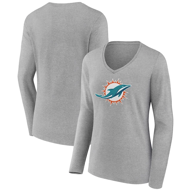Women's Gray Florida A&M Rattlers Basic Arch Long Sleeve V-Neck T-Shirt