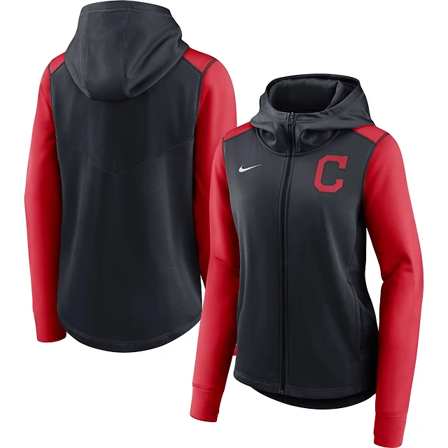 Women's Nike Navy/Red Cleveland Indians Authentic Collection Baseball Performance Full-Zip Hoodie