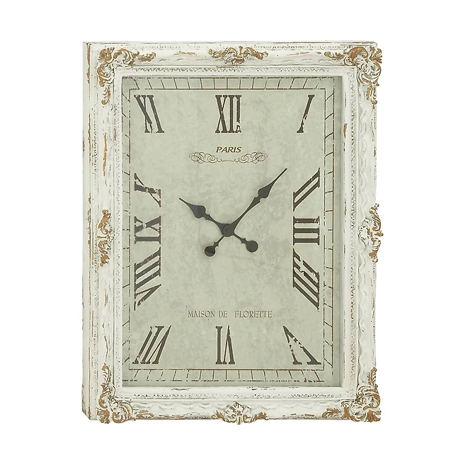White Vintage Wood Wall Clock, 36" x 27"