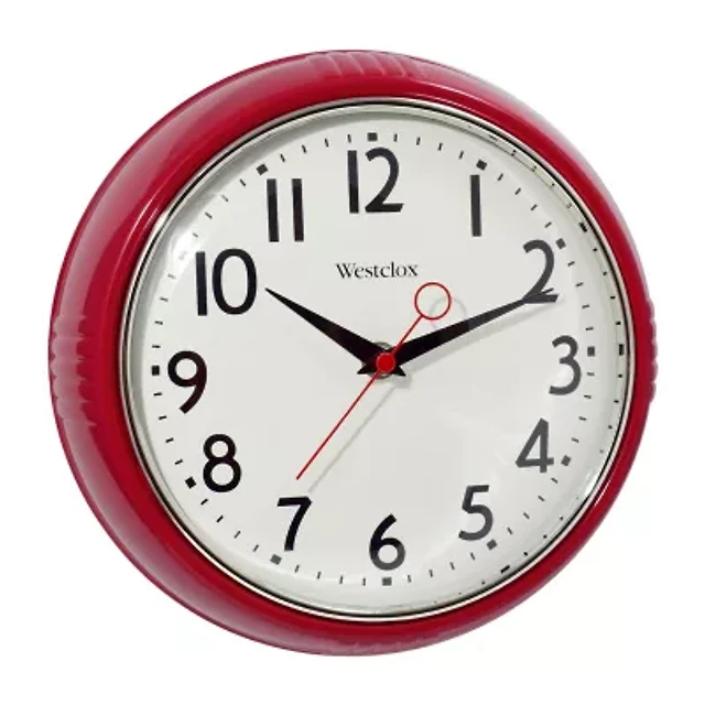 Westclox 9.5" Red Retro Convex Glass Lens Wall Clock