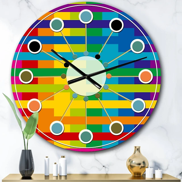 Designart 'Horizontal Retro Geometrical Pattern I Mid-Century Modern Wall Clock