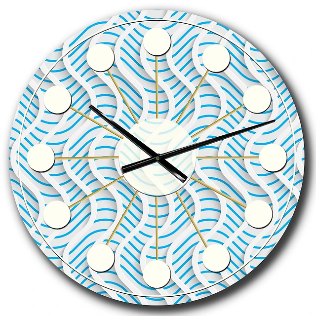 Designart '3D White And Light Blue Pattern I Mid-Century Modern Wall Clock