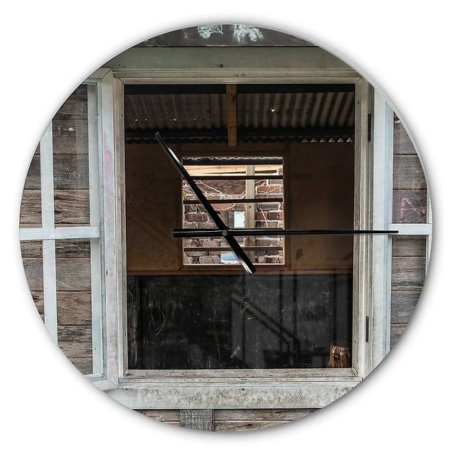 Round White Metal and Wood Wall Clock