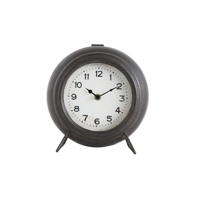 Black Metal Frame with Wood Base Tabletop Clock