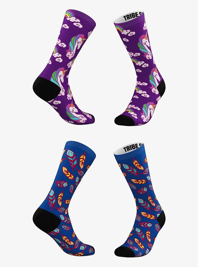 Purple Cloud and Blue Feathers Unicorn Socks 2 Pairs