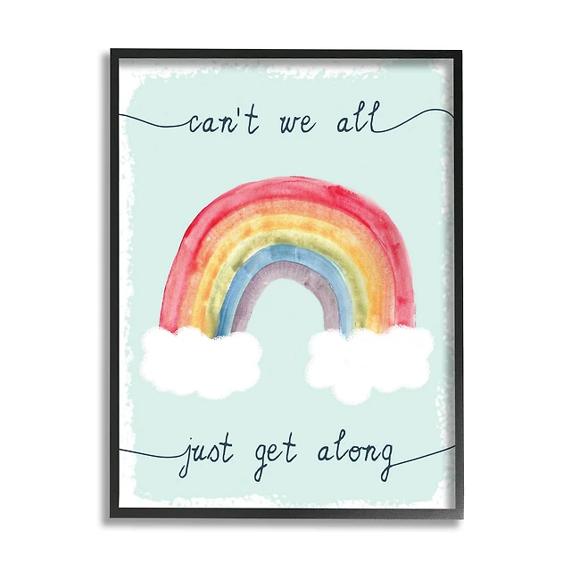 Stupell Industries Can't We All Get Along Quote Rainbow Clouds in Frame Wall Art
