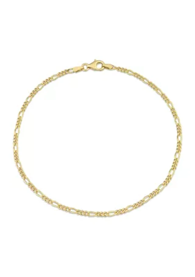 18k Yellow Gold Plated Sterling Silver 2.2mm Figaro Chain Anklet, 9"