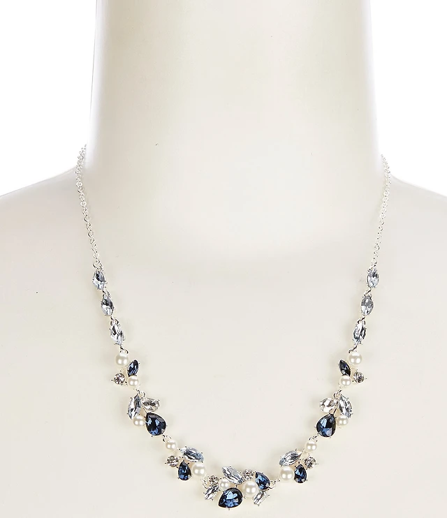 Cezanne Cluster Blue Stone and Pearl Collar Necklace