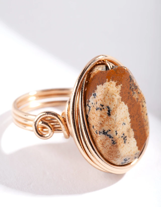 Gold Plated Trio Oval Stone Ring