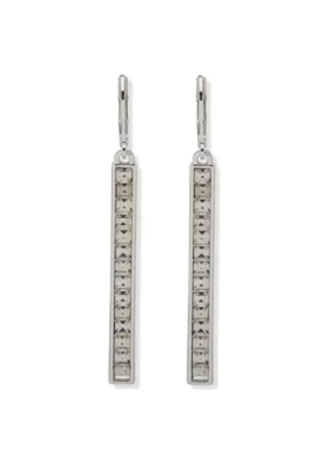 Silver Square Stone Drop Earrings