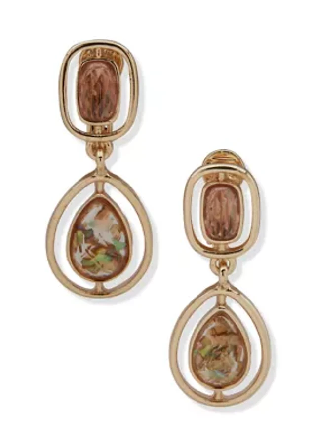 Gold Diamante Mixed Jewel Stone Drop Earrings