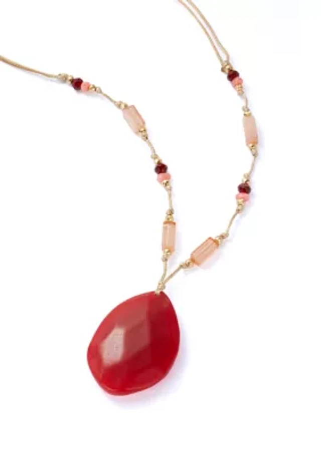 Gold Tone Denim Hard Stone Pendant Necklace