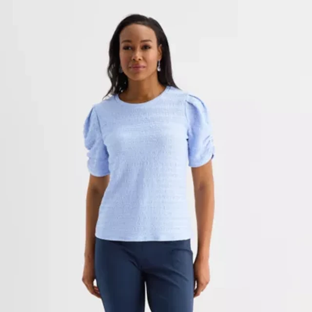 Liz Claiborne Womens Round Neck Short Sleeve Blouse