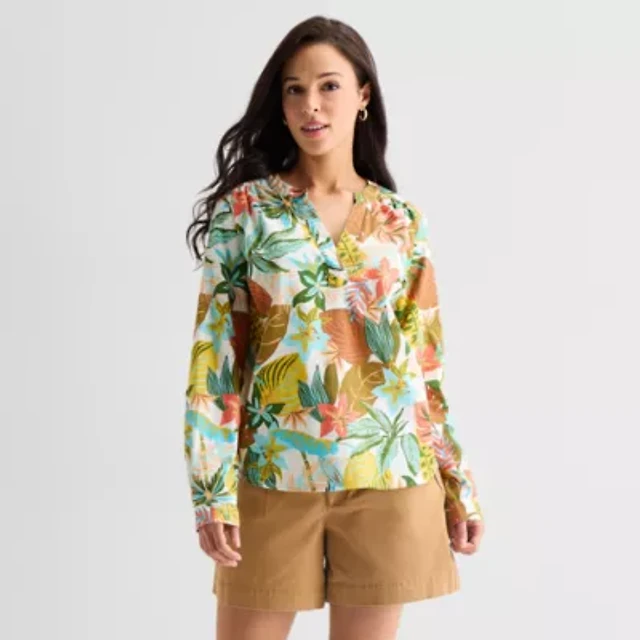 Floral Draped Sleeve Henley Blouse