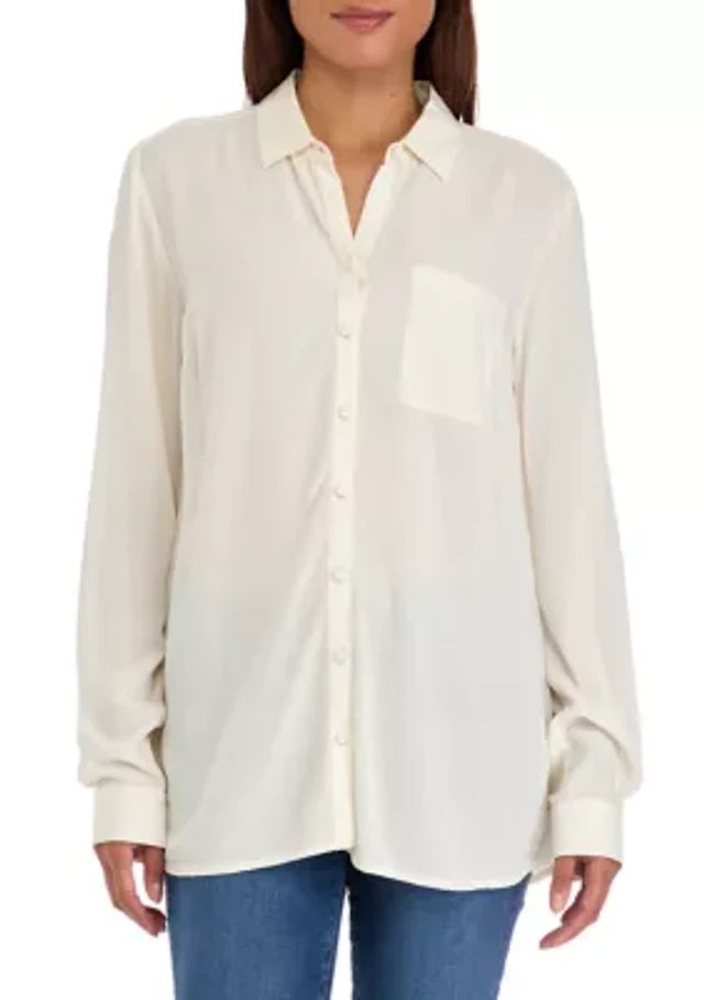 Calvin Klein Chiffon Futter Sleeve Point Collar Ruffle Button Front Blouse