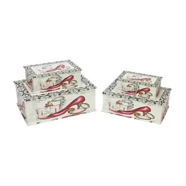 Set of 4 Vintage-Style French Fashion Decorative Wooden Storage Boxes 13.75"