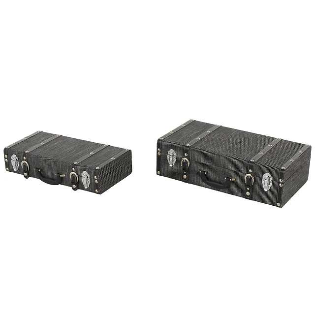 Brown Studded Storage Trunk with Black Metal Arched Tops & Vertical Strips Set