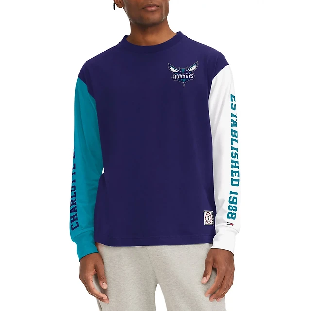 Tommy Jeans Teal Charlotte Hornets Amelia Color Blocked Long Sleeve T-Shirt