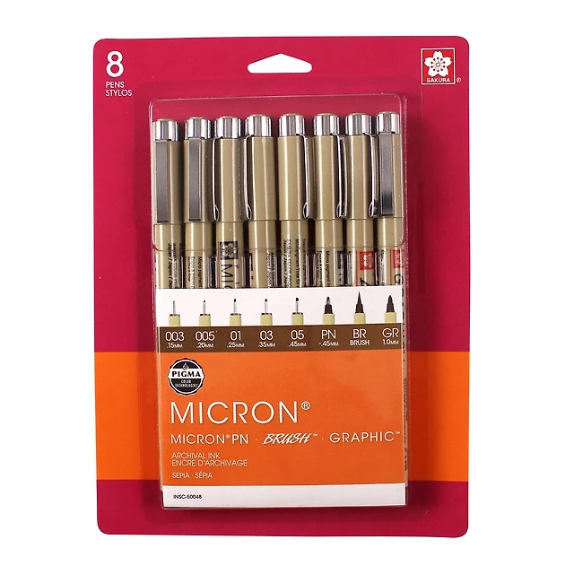 Pigma® Micron™ PN Durable Plastic Nib 8 Color Pen Set