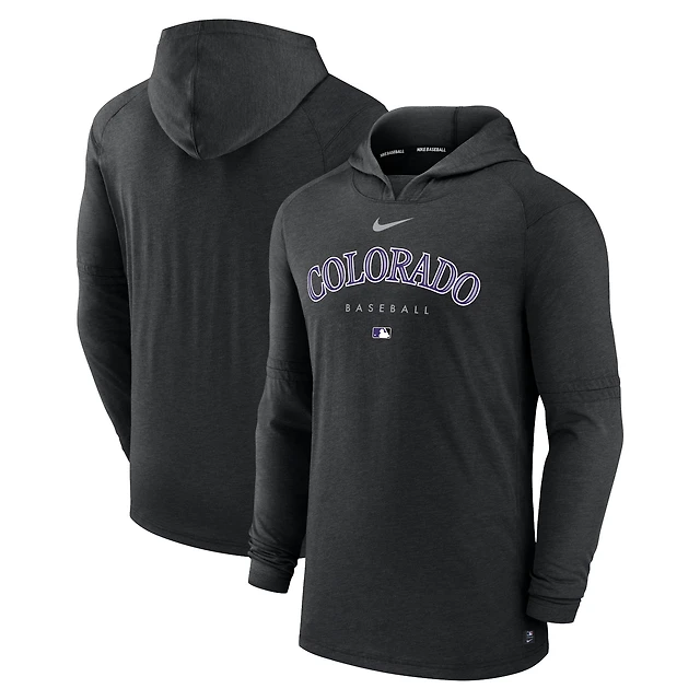 Men's Nike Heather Black Colorado Rockies Authentic Collection Lightweight Dri-FIT Hooded Pullover