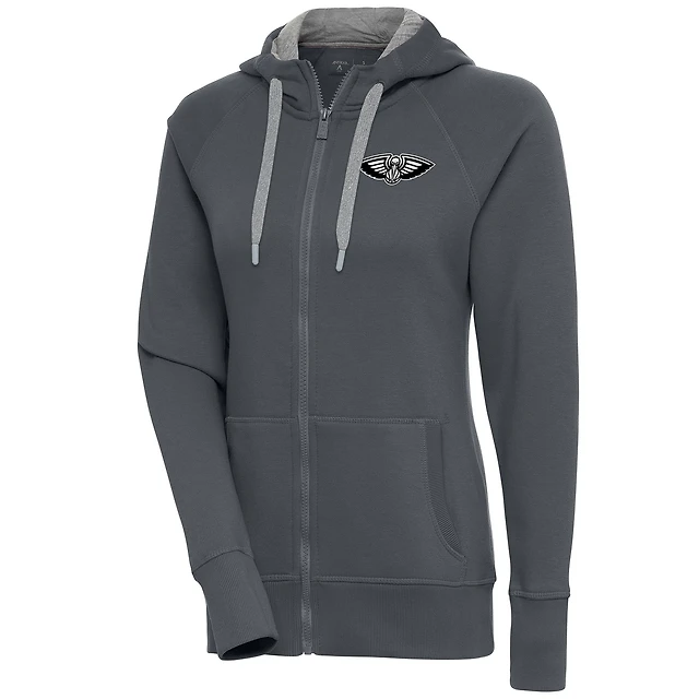 Women's Antigua Charcoal New Orleans Pelicans Brushed Metallic Victory Full-Zip Hoodie