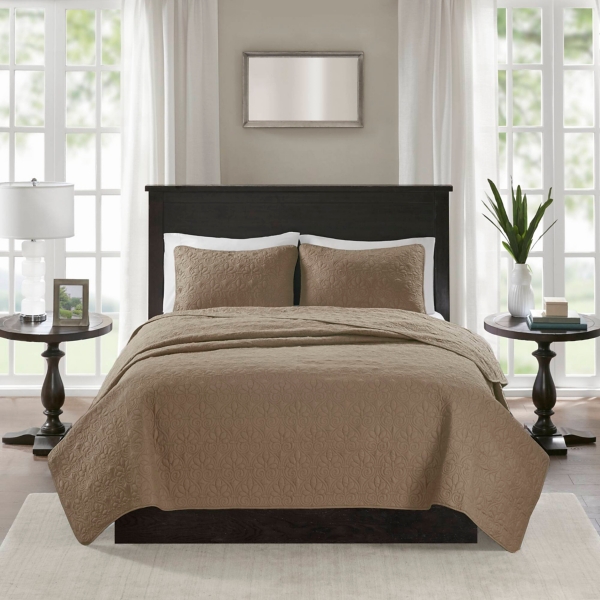 Tan Floral Reversible 3-pc. Full/Queen Quilt Set