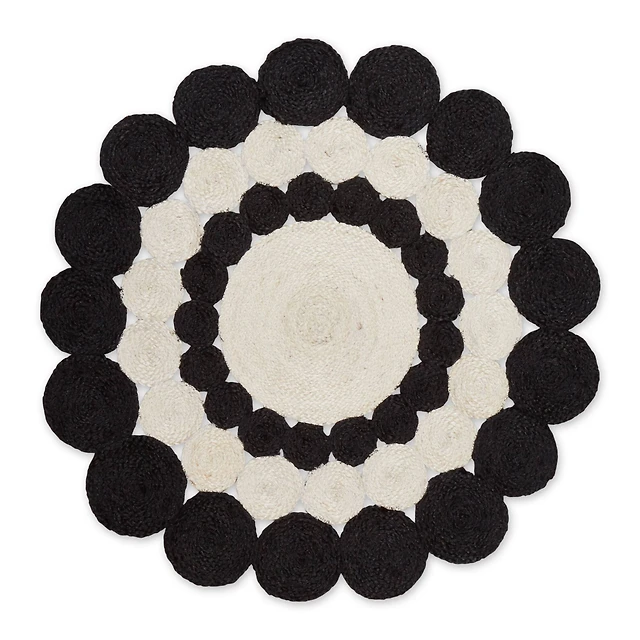 Hello Honey® Multicolor Boho Round Woven Cotton Chindi and Jute Rug with Circle Trim, 4ft. x 4ft.