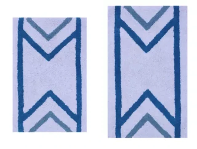 2 PC YARN DYED BATH RUG SET 17x24 & 21x34 ARROW OCEAN BLUE