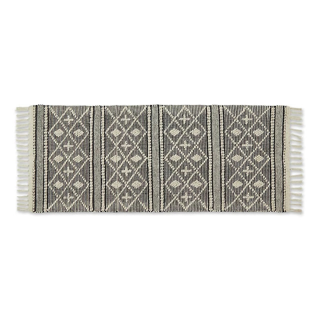 White and Black Diamond Tassel Wool Runner, 2x8
