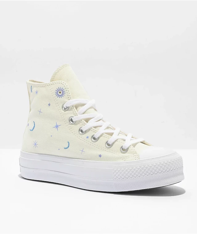 Converse Chuck Taylor All Star Lift Timeless White Embroidery High Top Platform Shoes