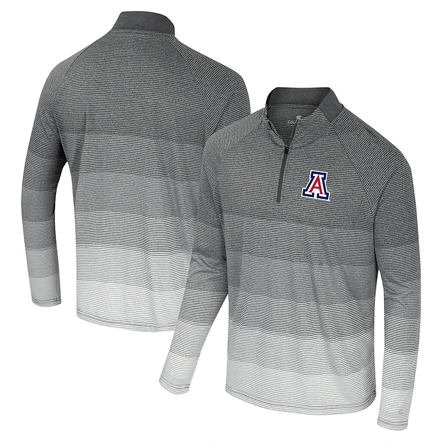 Men's Colosseum Gray Arizona Wildcats AI Striped Mesh Quarter-Zip Raglan Windshirt