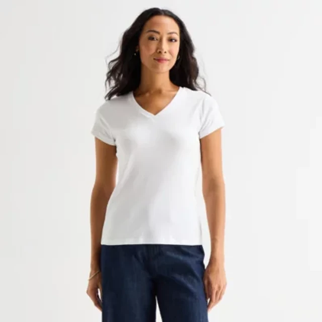 St. John's Bay Womens Plus V Neck Short Sleeve T-Shirt