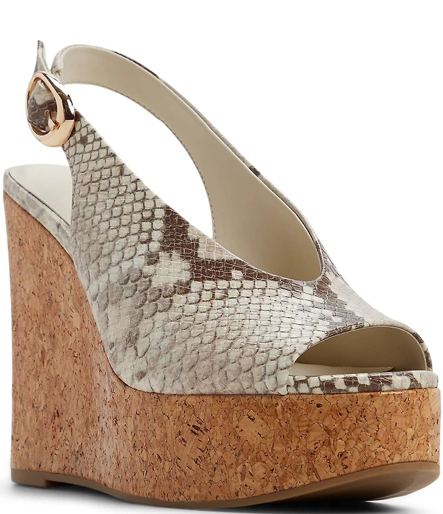 Naot Starlet Snake Embossed Leather Ankle Strap Wedge Sandals