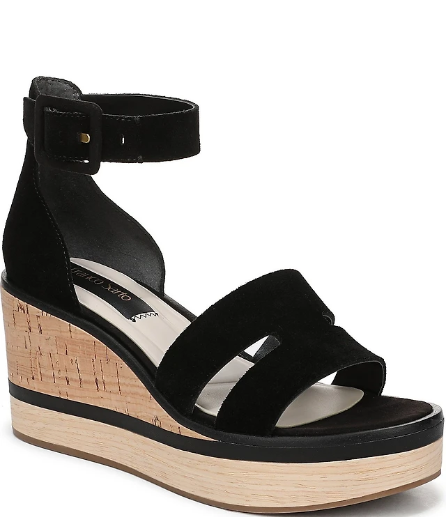 Clarks Signature Sabina Dream Suede Cork Platform Wedge Sandals