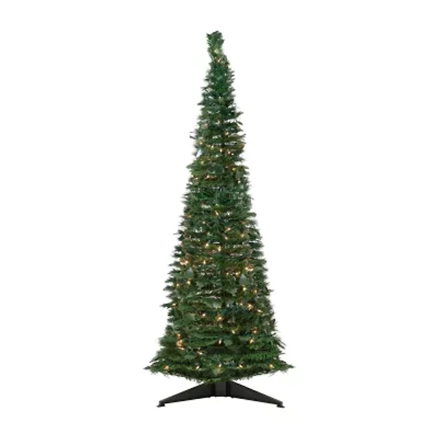 Northlight 4ft Prelit Pencil Flocked Alpine Artificial Clear 4 Foot Flocked Pine Christmas Tree