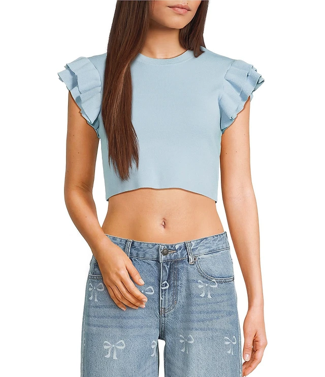 KatieJNYC Crew Neck Isla Ruffle Sleeve Top