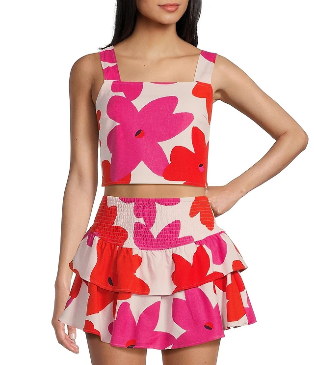 GB Floral Printed Linen Blend Coordinating Crop Top