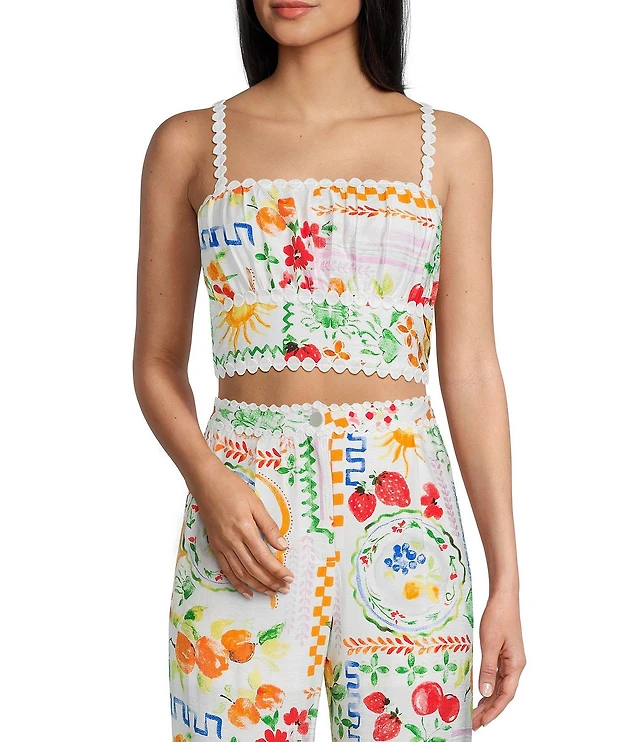 GB Floral Printed Linen Blend Coordinating Crop Top