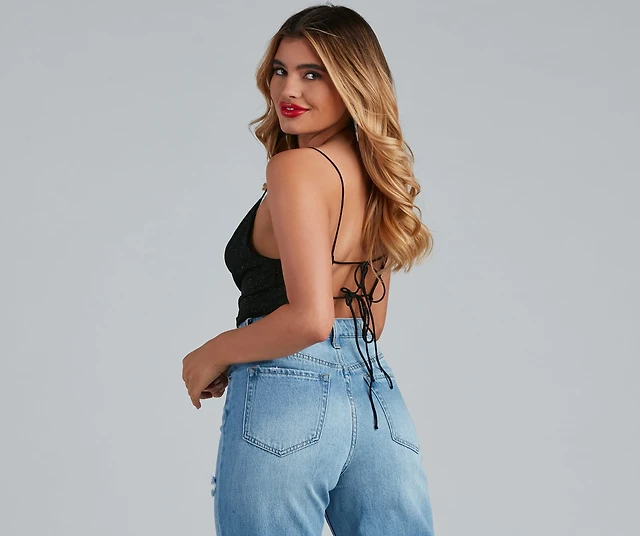 Major Stunner Sequin Halter Crop Top