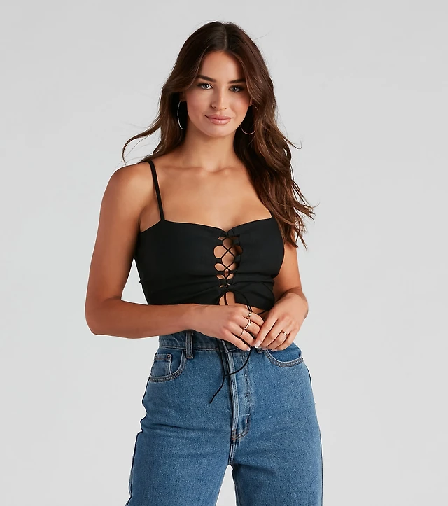 Sadie & Sage Linen Sleeveless Button Back Coordinating Crop Top