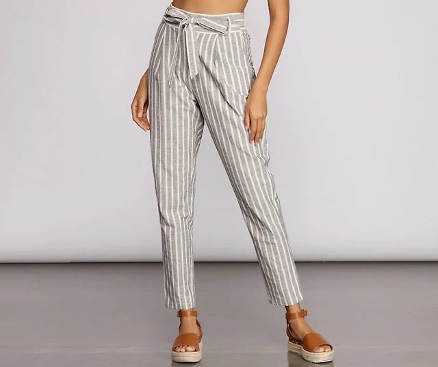 Linen Blend Wide Leg Crop Pants - Sunset Stripe