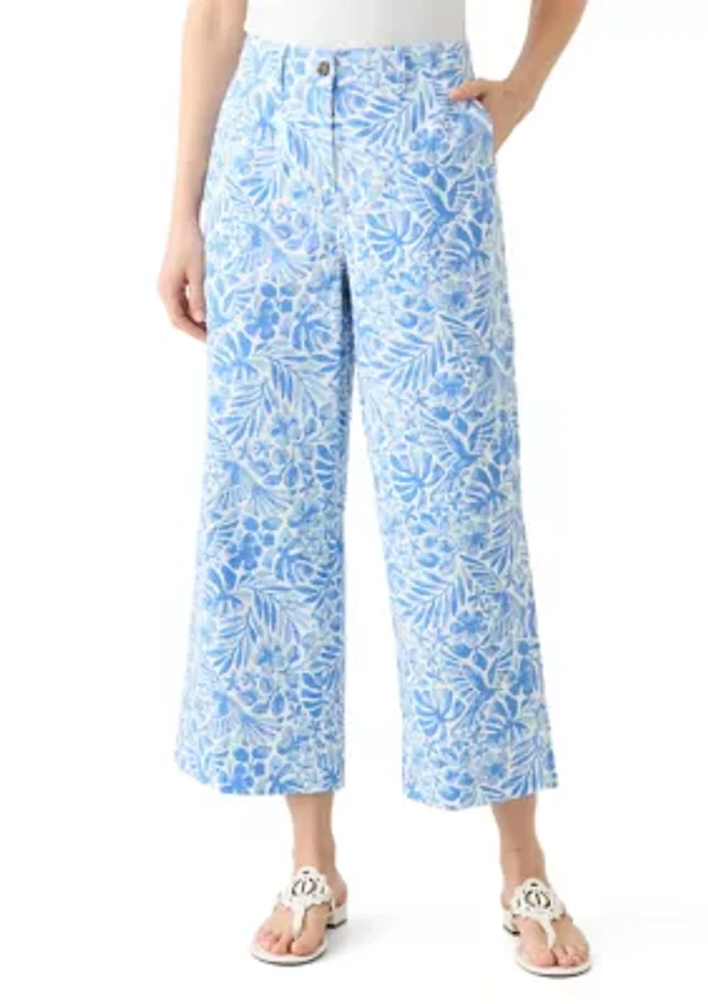 Poplin Pull-On Tapered-Leg Cropped Pants